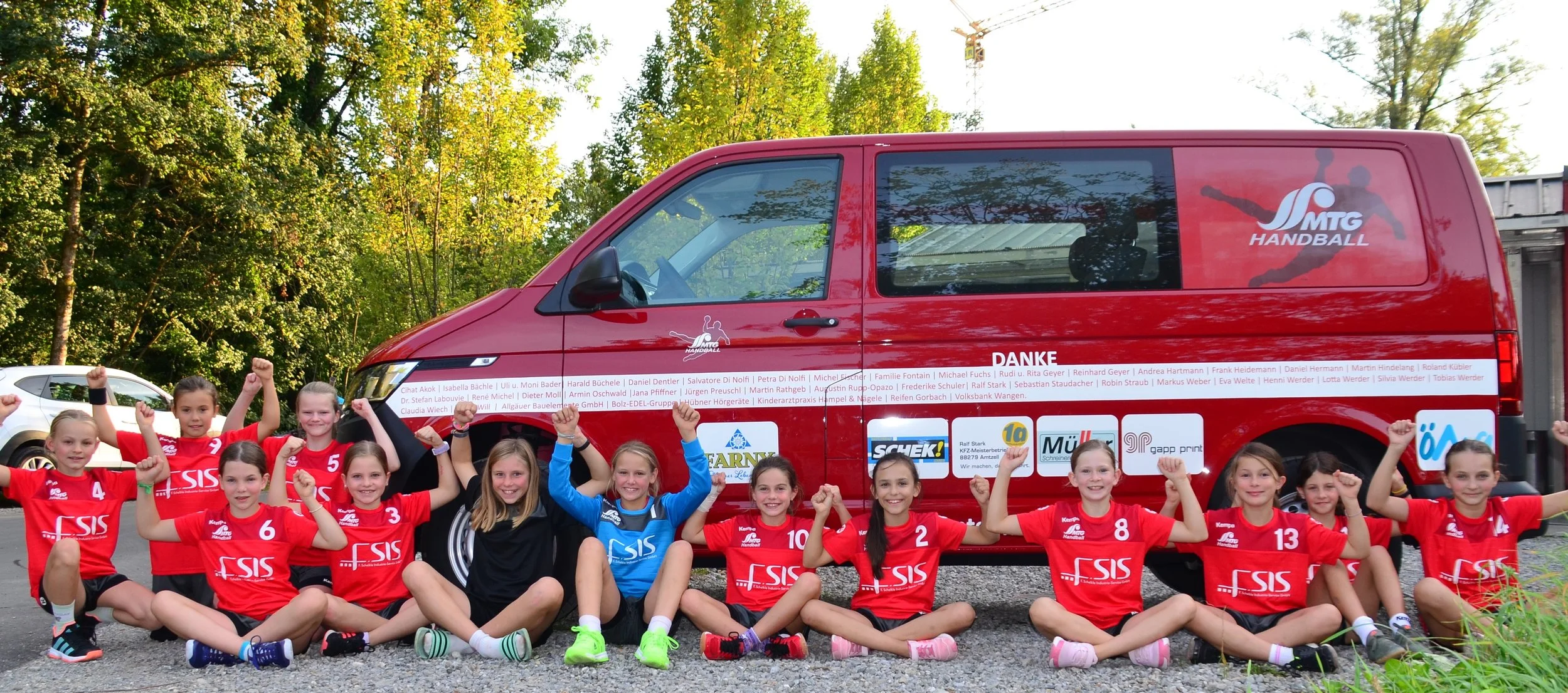 Die wE-Jugend bejubelt den neuen Vereinsbus bereits und bedankt sich stellvertretend für alle Kinder, Jugendlichen und Aktiven, die den Bus in Zukunft nutzen werden bei Euch.
